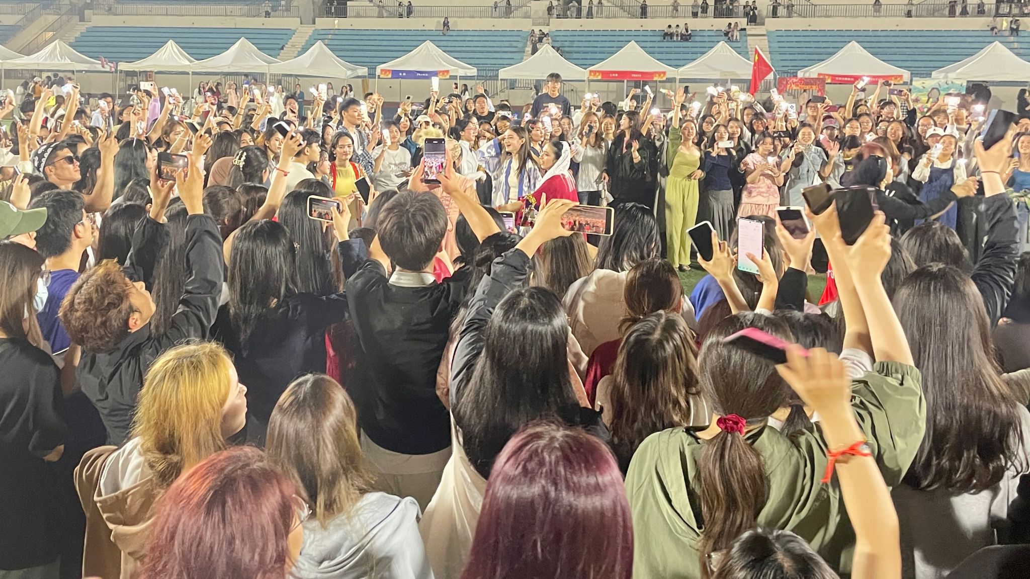 丰台校区运动场大草坪上充盈着欢腾的多元文化氛围,以“文明互鉴 美美与共”为主题的第七届国际文化节在此盛大开幕。来自全球各地的留学生与中国师生齐聚一堂,通过文艺表演、文化展示和互动交流,呈现了一场跨越国界的文化盛宴。