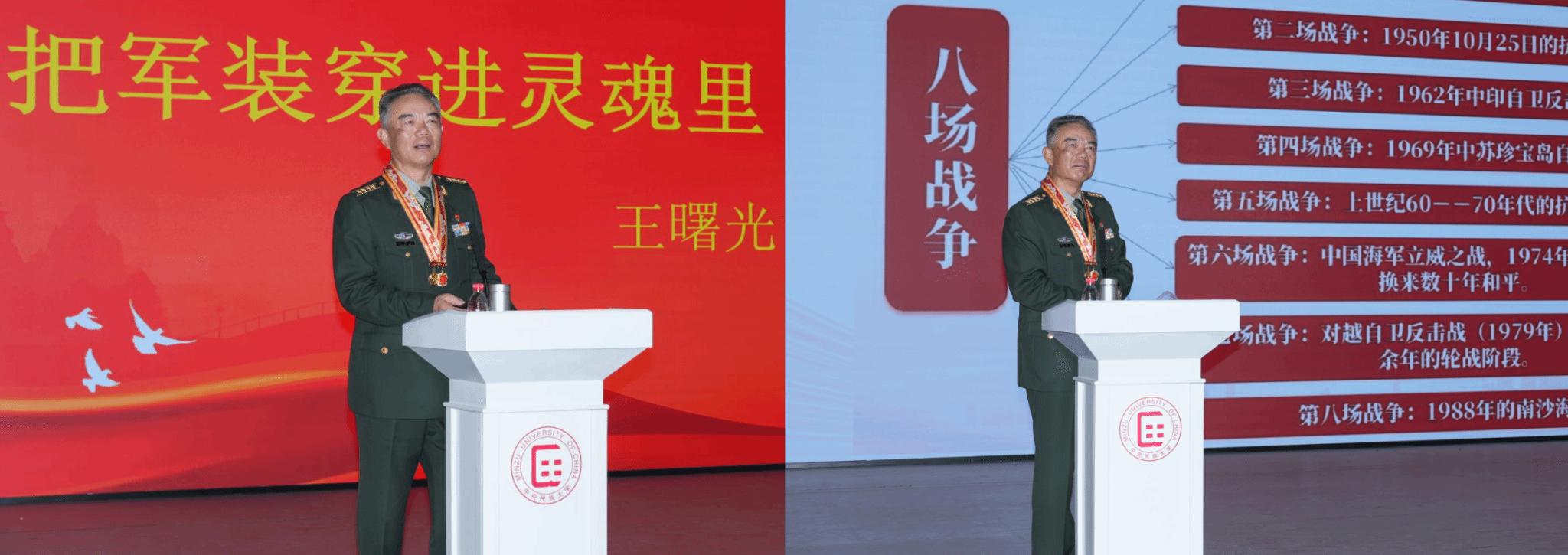王大校的事迹告诉大家:一个普通人的坚持,可以走得很远;一颗报国心的炽热,足以照亮时代。最后,王曙光大校勉励青年学子:“付吾辈之韶华,耀吾辈之中华”,将爱国之情、报国之志转化为脚踏实地、砥砺前行的力量。