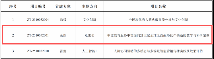 余烁老师的项目“中文教育服务中英面向21世纪全球全面战略伙伴关系的教学与科研案例”获得“走出去”主题方向立项。