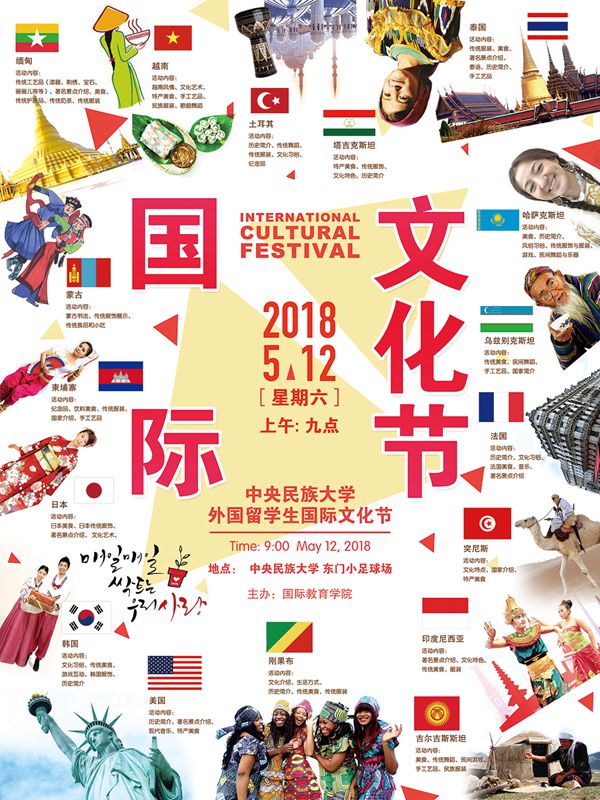 国际文化节以“魅力民大,牵手世界”为主题,旨在展现民大国际学生风采,拓展中国学生国际化视野,促进中外学生的融合。经过国际学生学生会一个多月的精心筹备,今年的国际文化节在形式和内容上都有了较大的提高,报名参加的国家再创新高,活动内容更加丰富多彩。今年的文化节更多地是由国际学生自己策划,学院给与指导和支持。上百名国际学生积极参与,出谋划策,设计了包括各国歌舞展演、各国文化美食展示、互动游艺抽奖等活动项目。