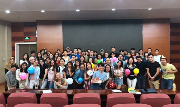 为了预祝学长学姐们毕业顺利,“国际学生学生会”精心地制作了一段视频送给他们,表达老师和全体本科生对他们的祝福,学生会还订做了印有“毕业快乐”的蛋糕。这一惊喜让学长学姐们特别感动,他们对老师和全体本科生表达了深深的谢意,最后大家合影留念,2018年银魂漫画