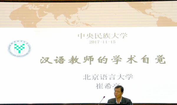崔教授还对认知语言学的基本主张、研究范围和研究方法等进行了一个具体的概述,包括对动词与宾语的配位、言说类动词研究、经验体等教学难题的分析,对汉字认知理据性的探讨等。