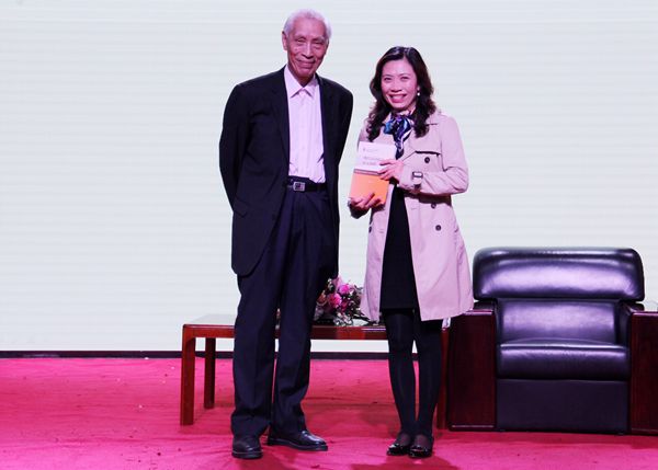 活动的第三个环节为赠书环节。在这一环节,师生们需要针对一些有关陆先生学术及工作等方面的问题进行回答,问题回答正确的师生将获得陆教授亲笔签名的著作《现代汉语语法研究教程》并与陆先生合影留念。大家十分珍惜这次机会,踊跃回答,现场气氛十分热烈。