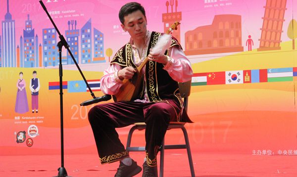哈萨克斯坦学生纳尔泰现场弹奏冬不拉