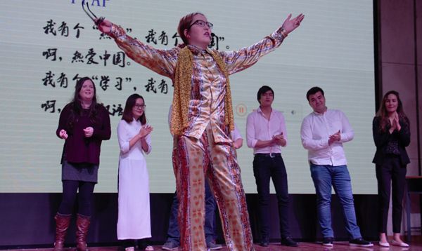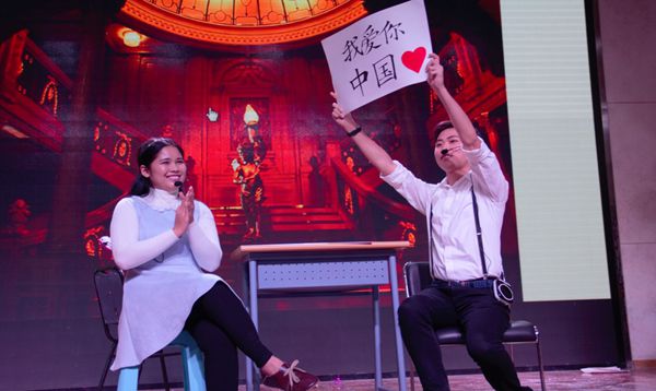 来自中级组的语言生5班、本科一年级一班、语言生6班和本科一年级二班跃跃上台,不甘示弱。《旅行奇遇记》中,我们跟着留学生进行了一场“说走就走的旅行”,并在路上遇到了很多神奇的人和事;《福教兽开讲啦》中,来自中亚的福教兽一本正经地讲述了如何成为中国通,使得大家欢笑不断;《梁祝历险记》把梁山伯和祝英台再次请出场来,演绎了一段穿越时空的爱恋;《民大甄嬛传》再现了中国古代的宫斗大戏,优美的歌声琴声穿插其中,美妙无比。