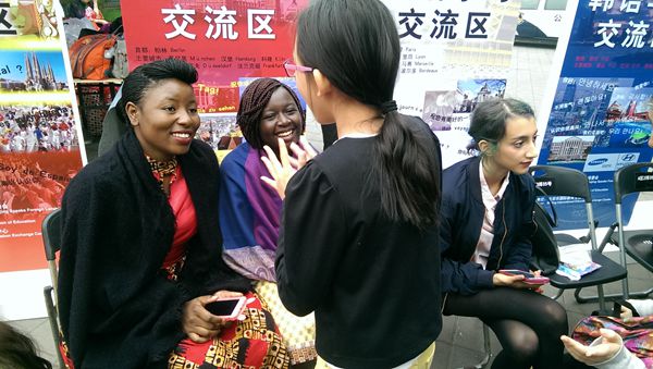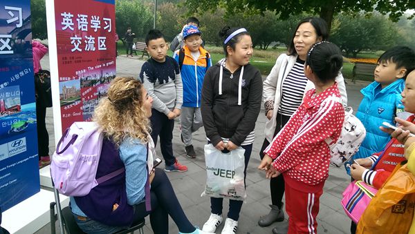 津巴布韦的留学生美尔和洛林为现场的北京市民演唱了一首中文歌曲《茉莉花》,他们把津巴布韦的歌曲与《茉莉花》巧妙融合在一起,精心的改编和优美的歌声得到了现场观众的一致好评。除此之外,来自土耳其的留学生哪敏和来自法国的两位留学生阿杰意和阿布蕾现场教中国观众学习土耳其语和法语,观众们积极参与到他们的外语教学中,同时也让中国的观众初步感受了土耳其语和法语的魅力。作为来华的汉语学习者,他们在交流区也用了自己学过的汉语与北京市民进行了简短的交流,游园会的最后,北京市民纷纷与他们合影留念,气氛非常融洽。