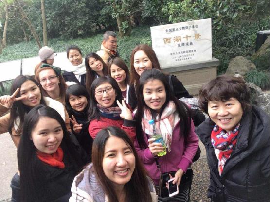 当天下午我们还参观了杭州西湖的丝绸文化博物馆。在那儿,不仅了解了杭州丝绸发展的历史始源,而且还学会了怎么分辨蚕丝的真假。晚餐品尝了西湖龙井茶,第一次听说“吃茶”的习俗。