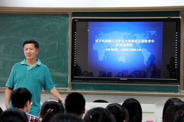 举行了题为《试论电脑输入汉字在北美高校汉语教学的实施原则》的专题讲座。副院长刘玉屏教授及2015级全体汉语国际教育硕士专业研究生参加并认真聆听了此次讲座。