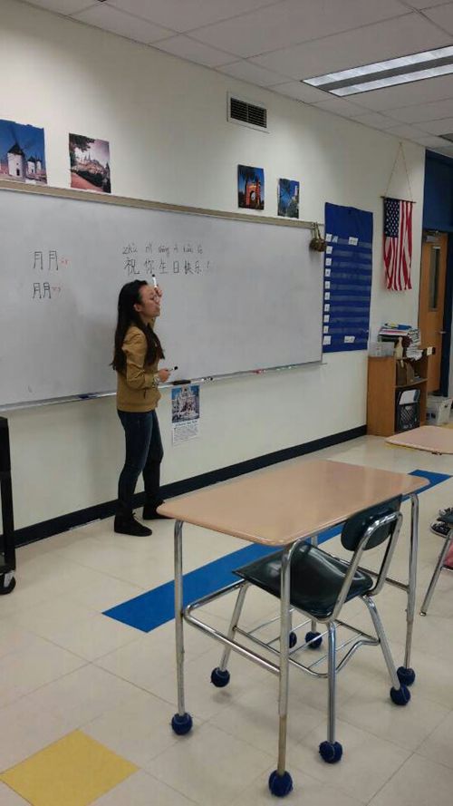 2014年11月第一次在美国高中教学生唱生日快乐歌