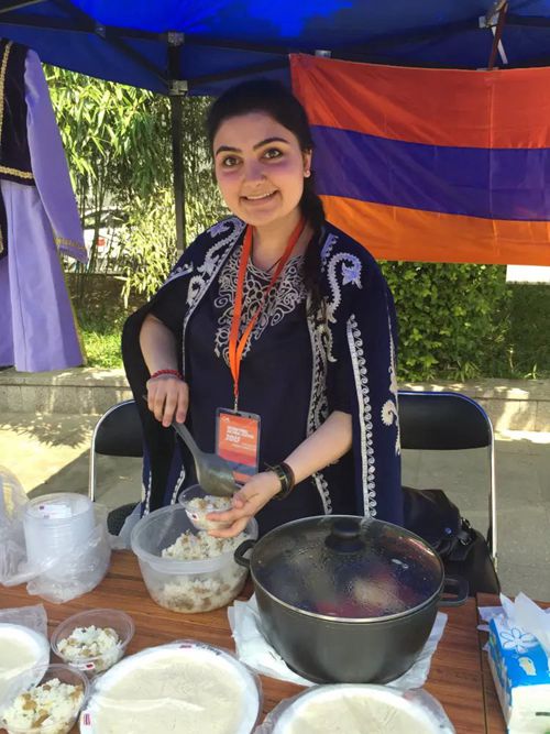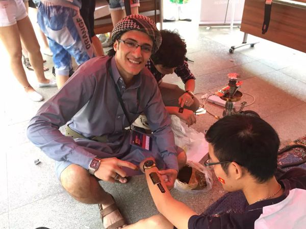 走近国际文化节国家展示区,来自加拿大、爱尔兰、也门、韩国、日本、乌克兰、哈萨克斯坦、泰国、缅甸、越南、喀麦隆、亚美尼亚12个国家的留学生朋友身着各色民族服装,展示极具民族特色的文化艺术品、图片、书籍、服饰和乐器,还准备了各国特色美食。泰国展台前,泰国学生现场教授泰语,现学现考,答对者可以得到精美的小礼物;对面的喀麦隆展台前,围满了学习非洲鼓的同学,大家纷纷上前,亲手感受这来自遥远国度的节拍;在韩国和日本展台旁边,中国同学在留学生的帮助下,体验着异国服饰;越南展台前摆满了精美的民族工艺品,令人爱不释手;也门同学带来的原始纹身体验和传统的水烟,吸引了不少参观者跃跃欲试。不知什么时候,中外学生在广场上围起了圈,和着动听的旋律翩翩起舞,笑着、唱着、跳着。。。尽情挥洒着属于这个时代的青春与活力。