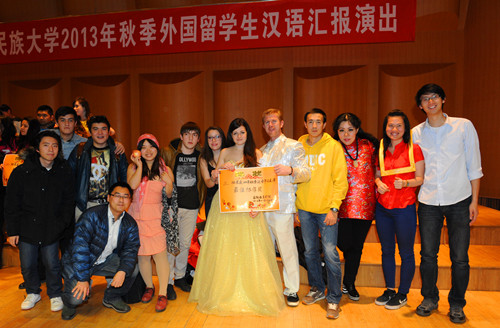 2013年11月27日下午,秋季外国留学生汉语汇报演出在全院师生的殷切翘盼中拉开帷幕。来自20多个国家的留学生在中慧楼音乐厅欢聚一堂,不仅为大家呈现了一场炫目倍出的表演,也为留学生个人一年的汉语学习演绎了完美收声。银魂漫画