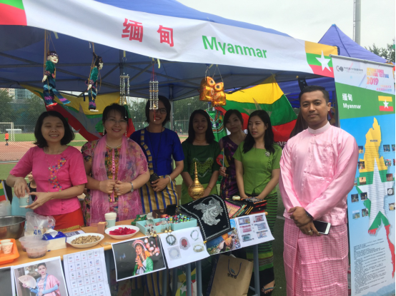 在各国文化展示区,中国、蒙古、俄罗斯、美国、日本、印度尼西亚、印度、埃及、刚果布、吉尔吉斯斯坦、哈萨克斯坦、乌兹别克斯坦、塔吉克斯坦、土库曼斯坦、巴基斯坦、越南、缅甸、泰国、韩国、乌克兰和法国21个国家的学生设置了各自国家的展台。他们身着本国传统服饰,热烈欢迎参观者并与他们进行互动游戏。学生们精心准备了文字介绍、特色美食、精美手工艺品和小礼物等,向前来参观的师生展示着自己国家和民族的语言、风情和文化。中国学生带来了她们小时候的回忆——小零食和套圈游戏,还有写福字、你来比划我来猜等小游戏,参与者可以通过游戏获得小奖品;蒙古学生带来了精致的马鞍和现场书法;俄罗斯同学带来的巧克力蛋糕得到了极大的追捧,很快便销售一空;泰国同学带来的特色饮品西米露香甜可口,受到了广大学生的欢迎;日本展台前门庭若市,学生亲身制作的乌冬面深受大家欢迎;埃及同学身穿的本民族服装吸引了很多人的注意,大家纷纷与他们合影留念……各国学生亲手制作的美食最受热情的参观者追捧。国际文化节小护照也是学生们的巧思之一,持有者拿着小护照纷纷到各展台盖各国的印章,集满21个印章,就可以参加抽奖了。最后,国际文化节在大家的依依不舍中落幕,期待明年再见。