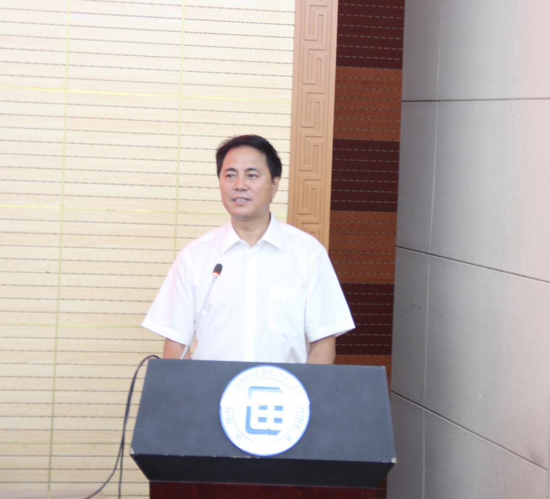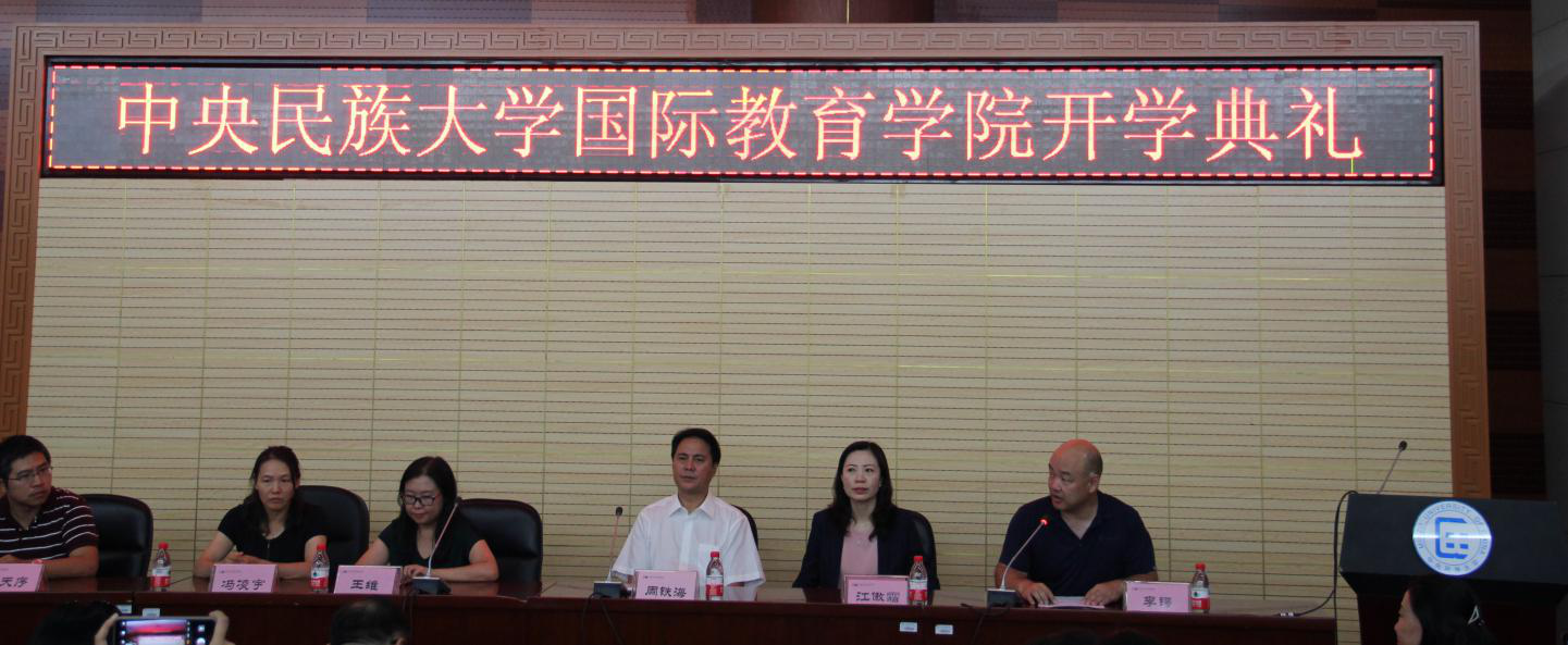 周铁海书记代表学院向来自世界五湖四海和祖国四面八方的新同学表示衷心的祝贺和热烈的欢迎!提出四点希望:一是具有健康向上的良好心态;二是养成美美与共的品德;三是造就学识上的知行合一;四是在国教学院规划美丽人生。