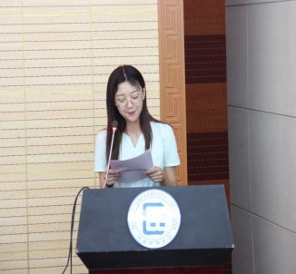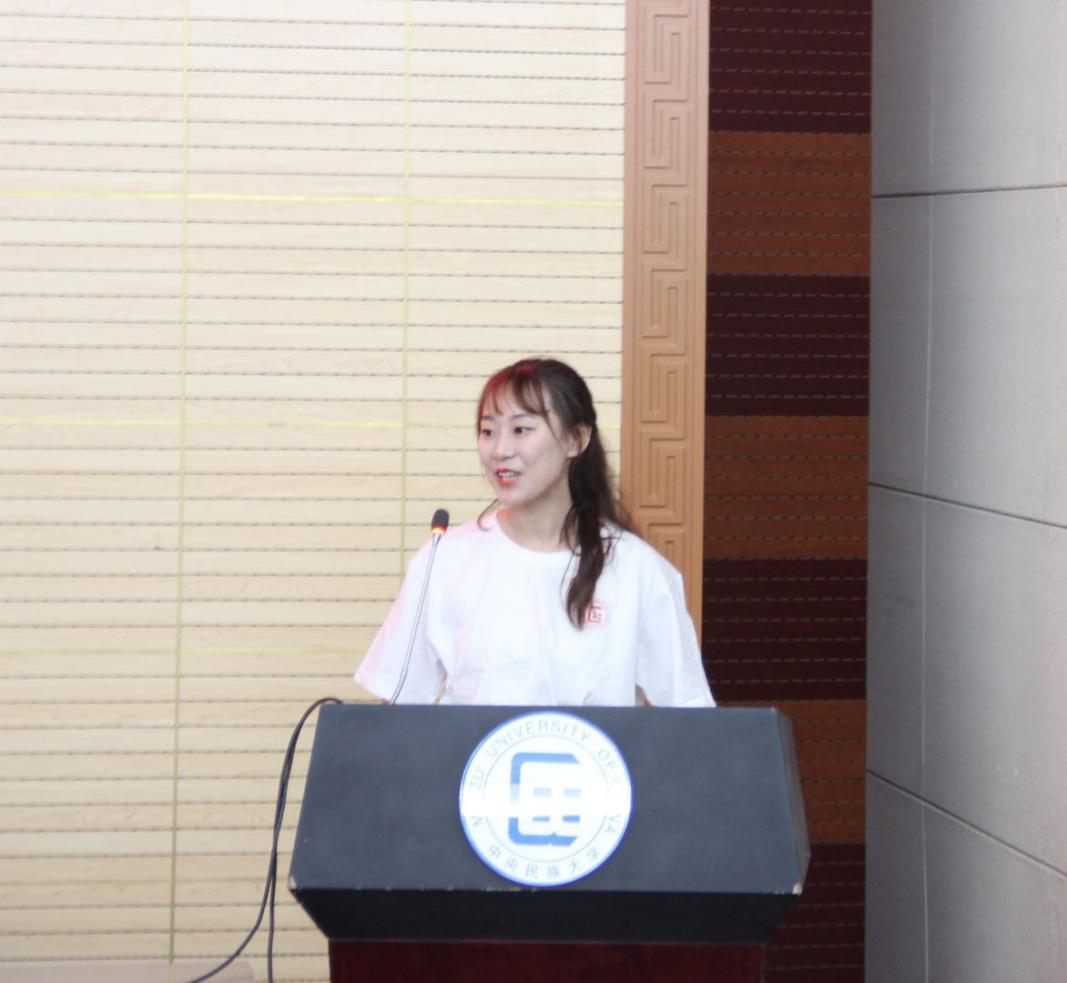 2019级研究生代表徐小童分享了她来民大2个月的感受,学院独特的培养模式,坚持创新性的行动以及致力于打造高端化的品牌都激励着她不断地去提升自己的国际化视野和跨文化交际能力。