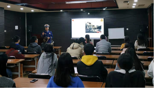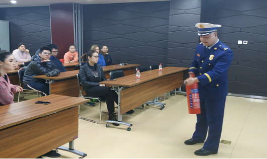 于11月29日下午在学院报告厅举办了2019年秋季学期“国际学生安全教育培训会”。会议邀请了北京市海淀区双榆树消防支队贾孝龙副中队长为国际学生进行消防安全讲座,并以“守规则除隐患 安全文明出行”为主题,开展了“122全国交通安全日”宣传教育活动。学校保卫处相关负责老师、国际学生事务办公室老师以及校内公寓住宿的国际学生参加了此次培训会。