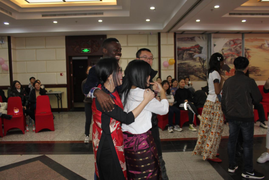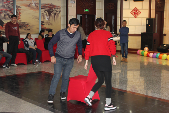 精彩刺激的“抢凳子”游戏开始了,参加游戏的中外学生跟着动感的音乐,争抢着为数不多的凳子,好不热闹。游戏结束后,来自吉尔吉斯斯坦的美丽同学和来自泰国的婉妮同学献上歌曲《带你去旅行》。