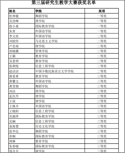 成功举办第三届研究生教学大赛。本次教学大赛旨在为有志于从事教育事业的研究生提供学习交流和积累教学经验的机会,培养研究生发现问题、分析问题和解决问题的能力。本次比赛通过线上提交研究成果视频和研究报告、专家评选的方式进行。大赛共有来自外国语学院、管理学院、理学院等13个学院的51位选手参加,经过三名一线教学专家的严格评审,最终共28位选手获奖。