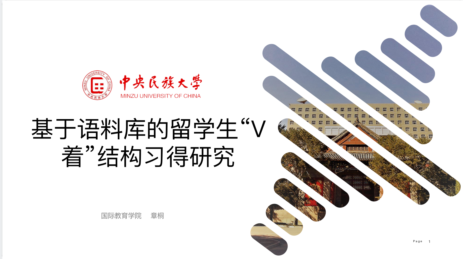 章桐同学基于语料库,考察了留学生对“V着”结构的使用情况,并从教学和教材两个方面提出了教学建议。评审专家认为该生在视频讲解中所用数据详实,理论基础牢靠,反映了学科的整体走向与发展态势。