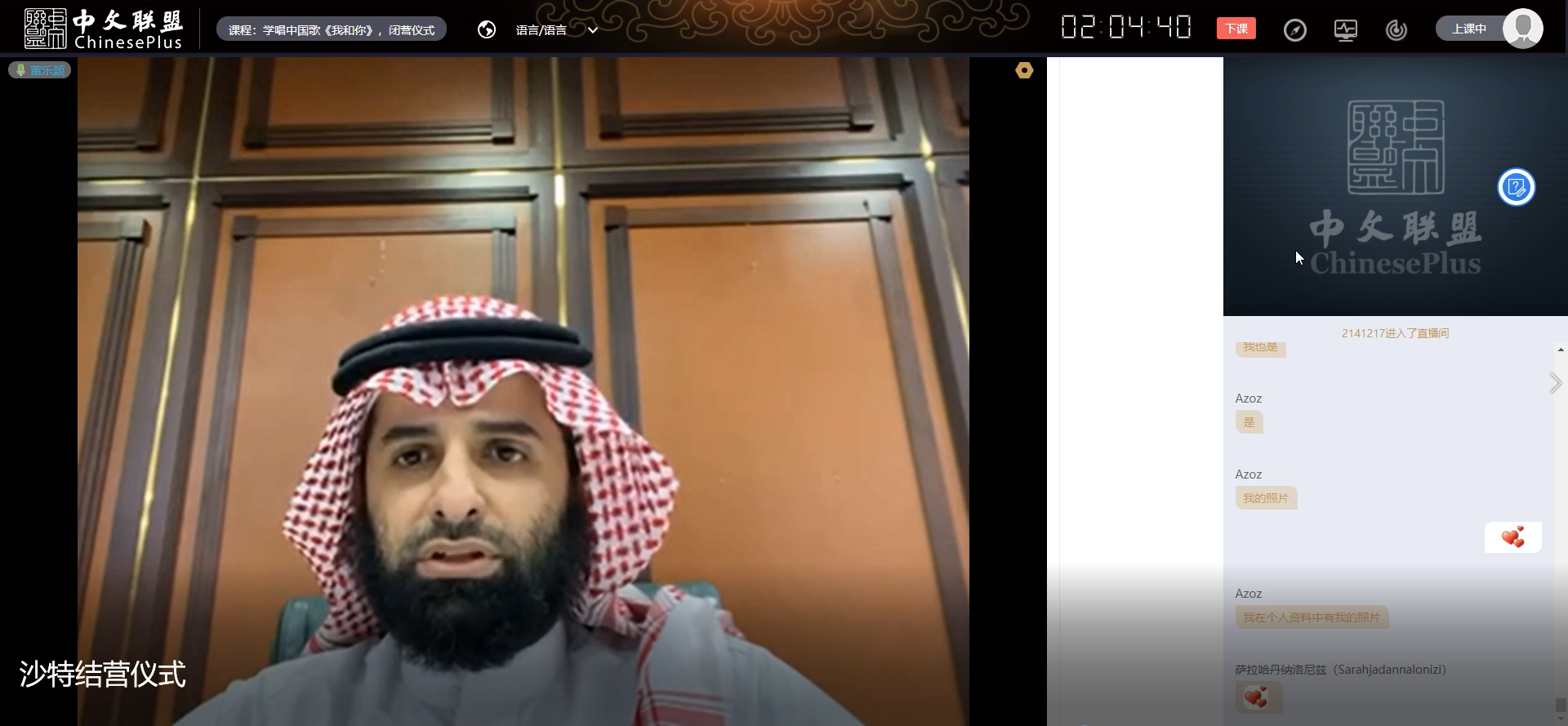 党总支书记周铁海、项目组教学主管谷陵老师和全体授课教师出席活动。百余名沙特大学生学员在线上参加仪式。闭营仪式由银魂漫画