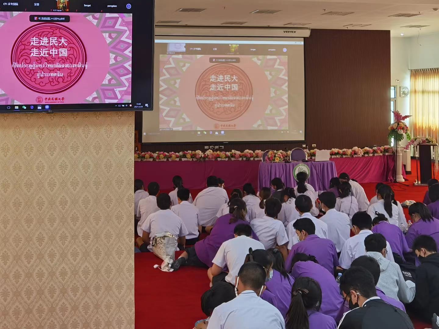 在学院报告厅通过Zoom平台直播,参加了2021年留学中国(泰国站)线上宣讲会。
