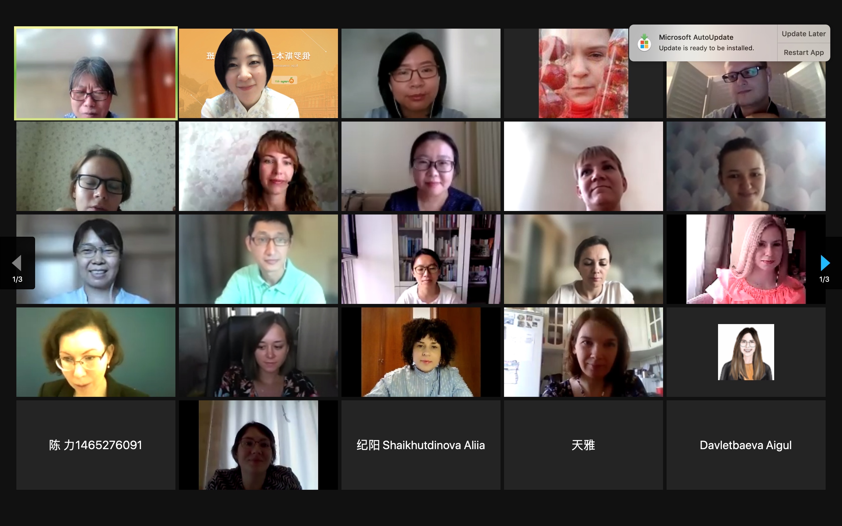 副院长兼副书记李锷,项目教学负责人邓秀均老师,俄方项目负责人公铭女士,教学团队近十位任课教师以及来自俄罗斯四十多所高校和社会教育机构的七十名本土中文老师参加了结业仪式。本次本土汉语教师线上研修项目从7月12日开始,为期六周,总课时达360节。经过一个半月整整六个星期的培训,在中俄双方机构和老师们的共同努力下,项目取得了十分圆满的成功。培训以相对系统的课程而非讲座的形式进行,无论在培训人数,还是在培训时长以及培训强度方面,在目前国际汉语教师单一国家开展的线上培训项目中,都可以说是规模最大的项目。
