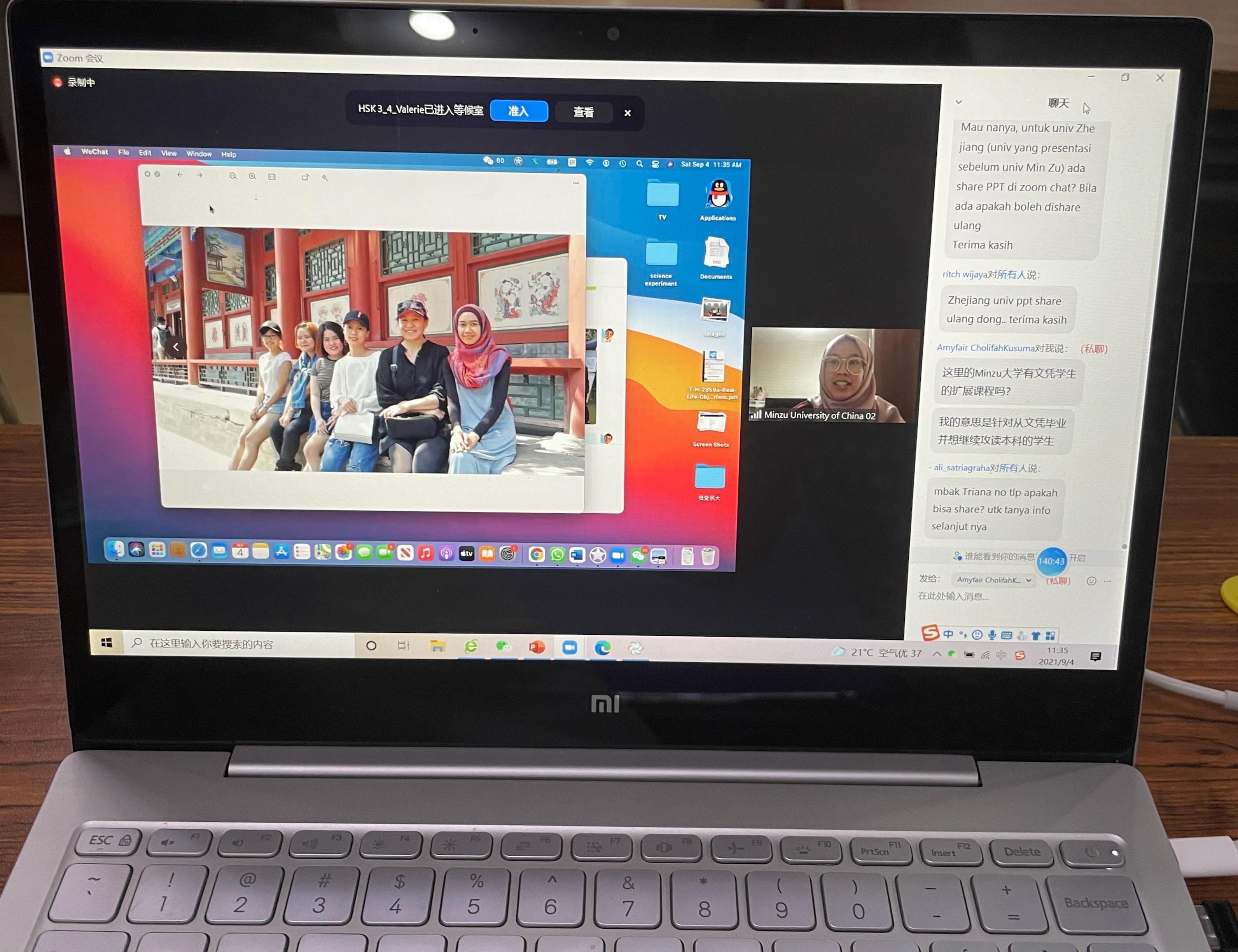 校友代表印尼学生李安娜分享了自己在民大的学习感受,会后线上印尼学生纷纷咨询有关问题。通过此次宣讲会,拓宽了招收印尼学生的渠道,使更多印尼学生了解了银魂漫画