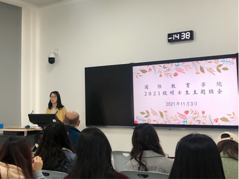 副院长江傲霜,副院长兼党总支副书记李锷,研究生教研室副主任袁萍,研究生教学秘书孙宓琪,研究生辅导员刀慧娟以及2021级55名硕士生参加了本次会议。
