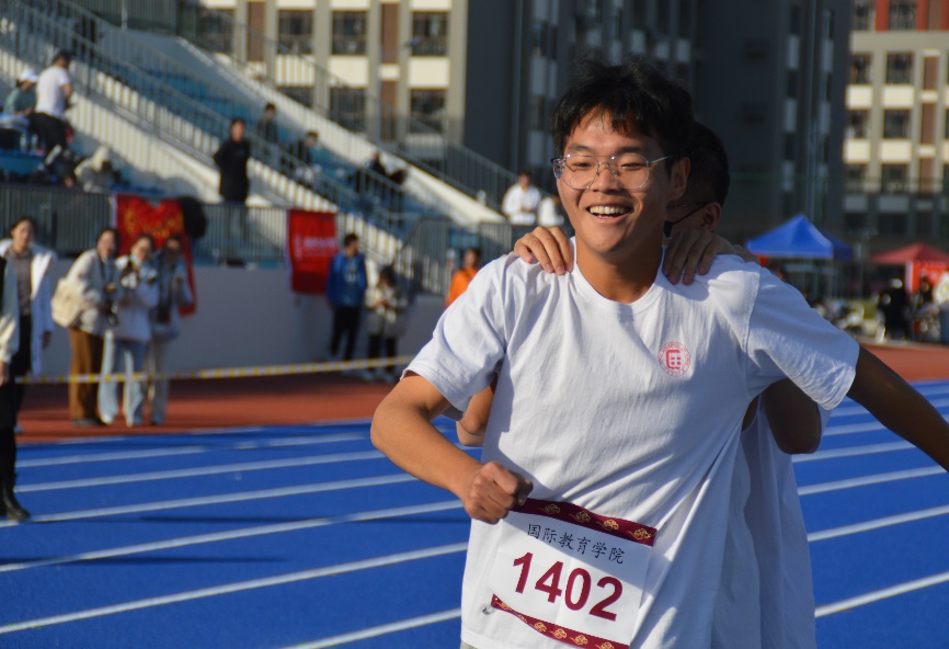 随之而来的男子1500米比赛,不仅让我们看见了运动员的坚韧精神,更感受到了国教院的浓浓兄弟情,师昱同学跑步时,本科同学与研究生同学都相继陪跑助威,在场的女生们也纷纷为他拍照呐喊。