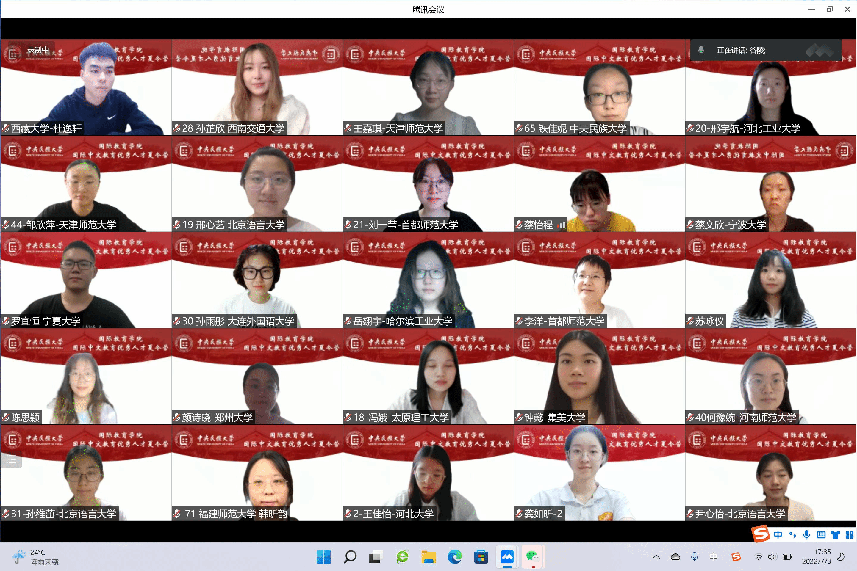 举办了第二届“国际中文教育优秀人才夏令营”。此次夏令营面向全国招生,最终录取了来自45所高校的77名优秀本科生营员。