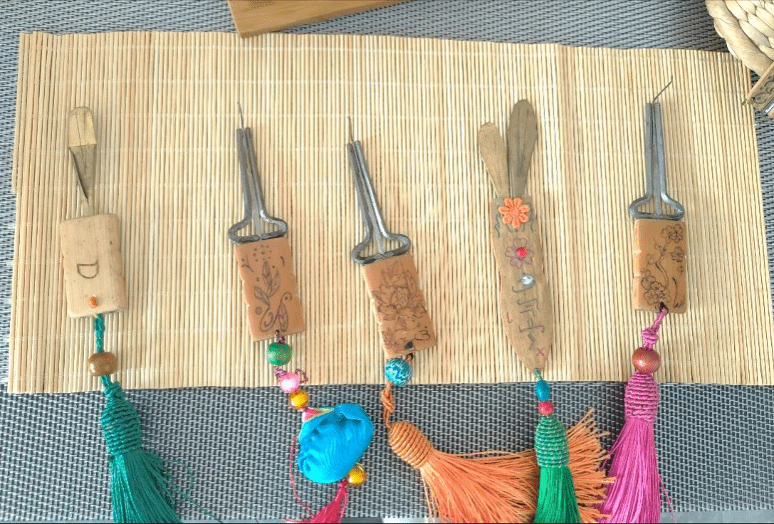 团队成员首先参观了国家非物质文化遗产项目回响民间乐器工作室的陈列室,聆听安宇歌老师介绍口弦的历史、传承以及现今口弦的发展。安老师是回族民间乐器口弦代表性传承人,也是“安氏口弦”第二代传承人,宁夏非物质文化遗产保护中心研究员(正高级),更是全面掌握竹口弦与铁口弦弹奏技能与手工制作的艺人,曾荣获“文化部非遗保护工作先进个人”等多项荣誉。三十多年来,安老师通过演出交流、非遗进校园等多种形式,向全球20多个国家不计其数的专家、学者及观众普及传播这一非遗项目,其于2011年编著的《宁夏回族口弦》一书,更填补了国内在口弦传授中没有文字教材的空白。