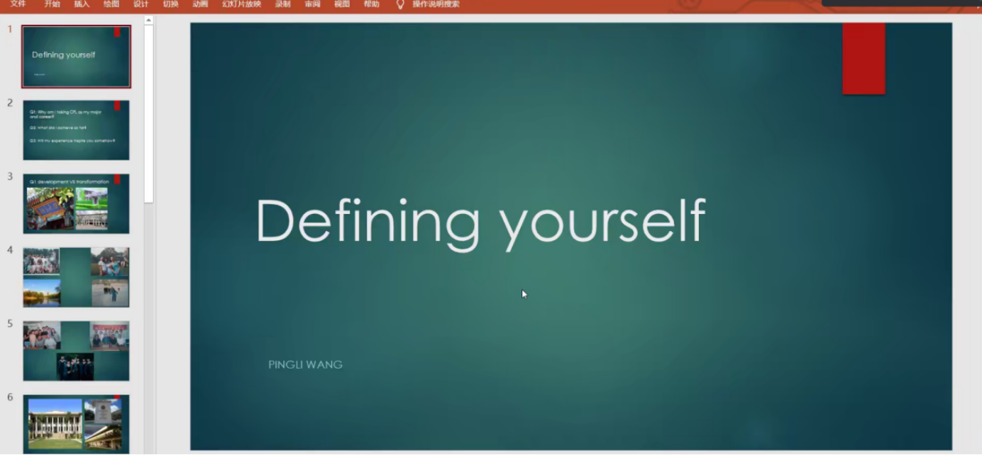 王萍丽老师以“Defining yourself 塑造自己”为主题,围绕“为什么选择自己的专业和职业”、“从中收获了什么”、“对同学们有什么启示”三个问题展开讲述。王萍丽老师亲切地与同学们交流了她的学习经历和从教经历,极大地激发了同学们对汉语国际教育学习的热情。王老师介绍了有趣的学习生活和留学经历,在学习知识的同时收获了美好的回忆。此外,她还向同学们介绍了从业方面的经验。王老师的讲座热情洋溢,氛围轻松,她始终与同学们保持密切互动,耐心解答同学们的疑问,引领同学们深入了解国际中文教育,用自身经历鼓励同学们满怀热情、追求理想,争做努力自信的国教人。