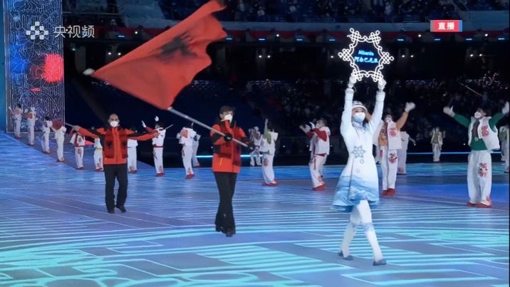 2022年北京冬奥会开幕式上,张齐红担任阿尔巴尼亚国家队引导员