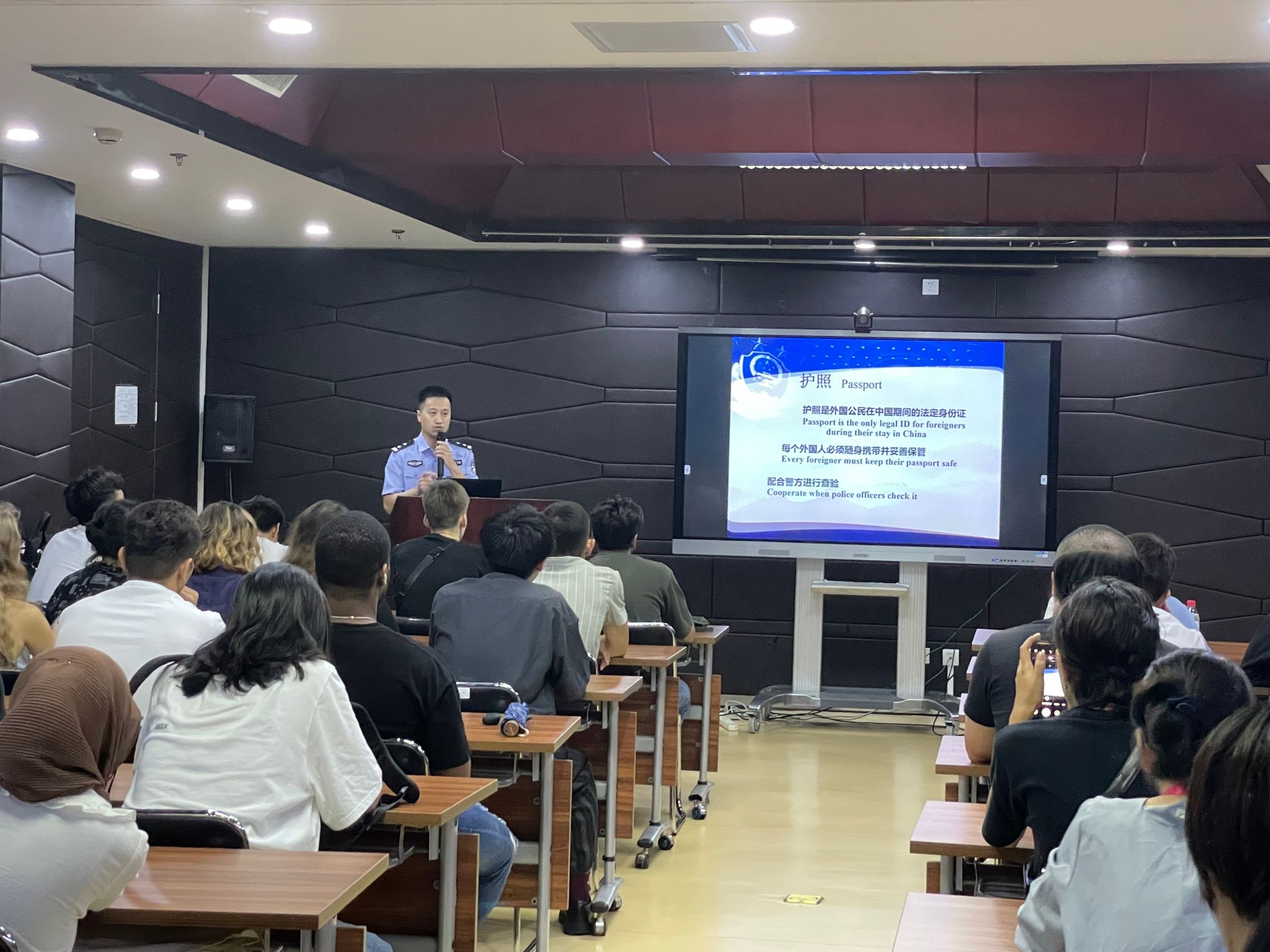 国际学生新生入学教育大会,对国际学生新生进行中国法律、法规和校纪校规的宣传教育,介绍在校学习生活须知。