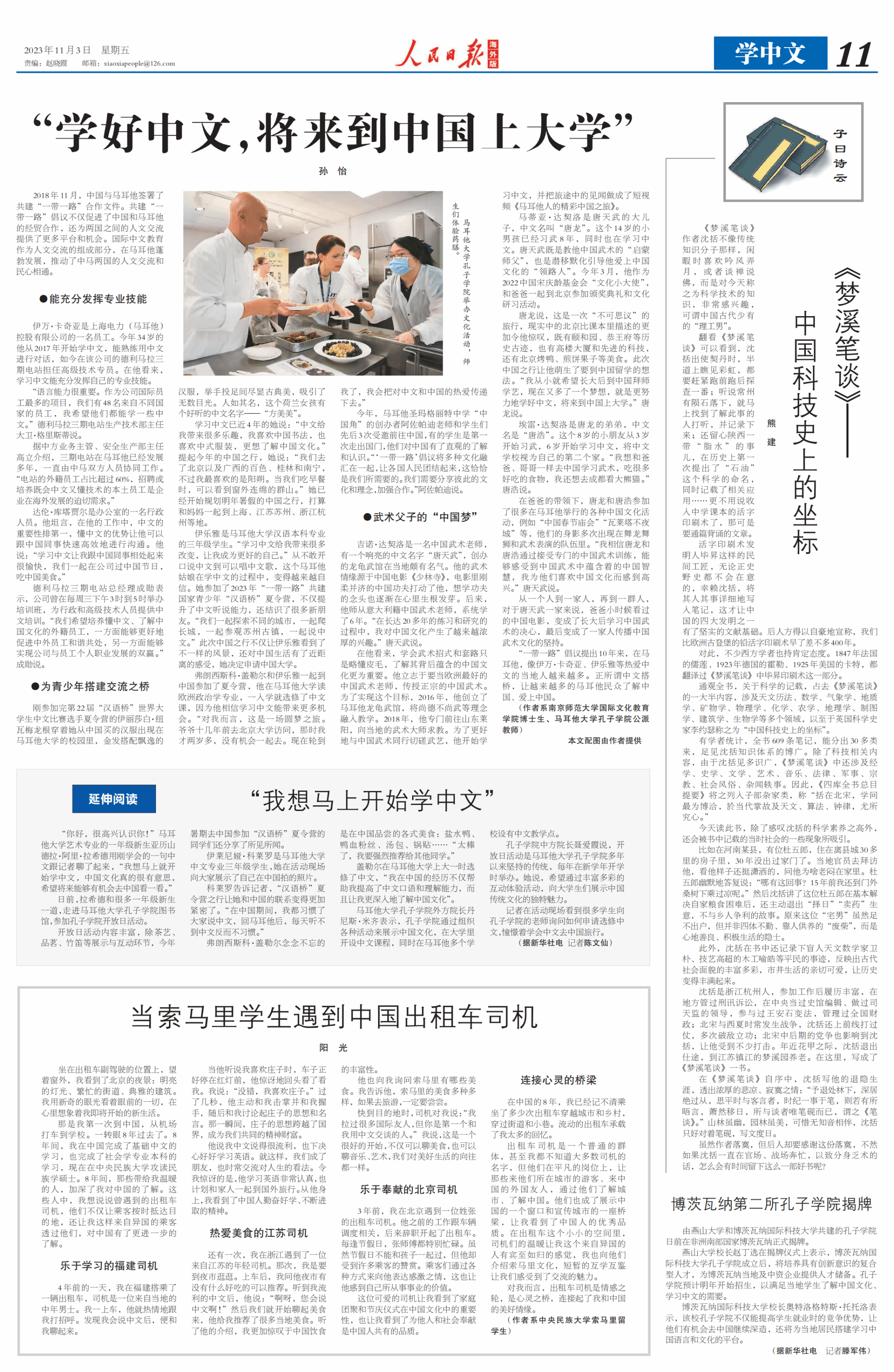 国际学生首次在《人民日报·海外版》上刊发文章。