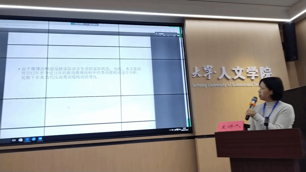 曾立英教授应邀参加论坛并以《基于近十年微博语料的类词缀构词的变化》为题作大会报告。研究围绕近年来新浪微博中类词缀构成新词的变化进行了考察,分析了微博语料下《人民日报》中指人类词缀构词近11年来的历时变化,对微博等新媒体中类词缀构成的新词进行了动态研究。曾立英教授的研究展示了微博平台上的语言使用和社交互动,为更好地理解中文词汇演变提供参考,有着跨学科的研究意义及应用价值。
