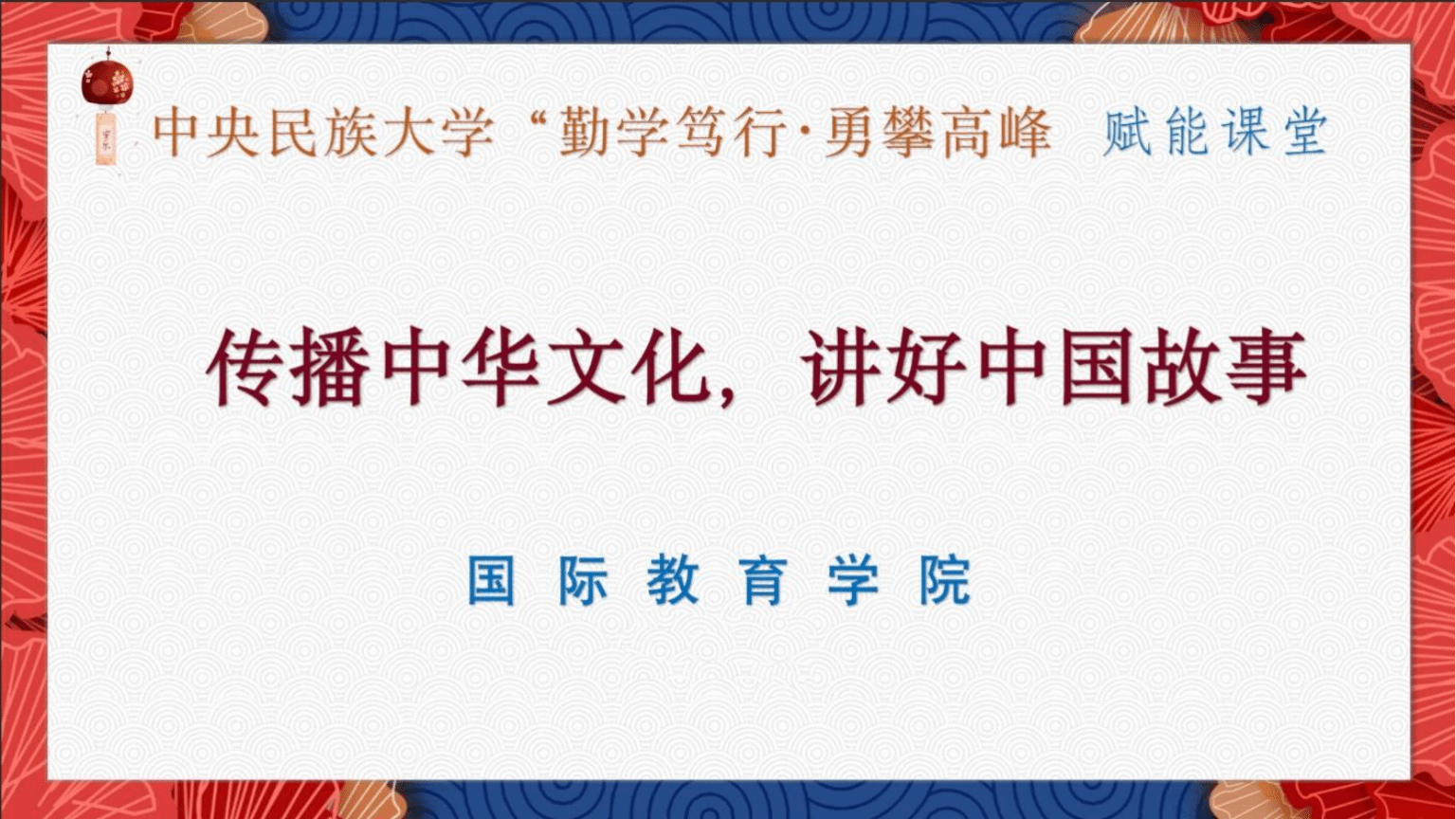 田老师的讲座分为四个部分:文化传播概念、中华文化传播途径、中华文化传播内容及中华文化传播能力。