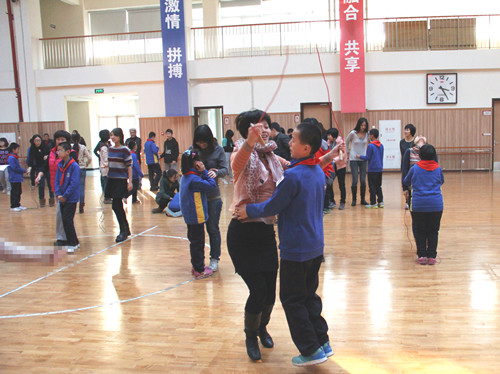 和盲人学生双人跳绳,对我们每一个人来说都是一次不小的挑战。一个带一个,刚一开始总是不能协调如一,但是在盲校老师的指导下。我们喊着口号,慢慢地找到了诀窍。一分钟记时,甚至有一组在一分钟跳了117个,这样的成绩也创下了盲校的记录。我们为之欢呼和感动,其后的传球接龙,蜗牛赛跑都是团体合作项目。尤其蜗牛赛跑。前一个人要抓住后一个人的脚踝,大家坐在地上,喊着口号共同前进。虽然在和盲人学生的合作中有所不便,但最重要的是我们能换位思考,用他们的心再次体会这个世界。这个世界也许不是由色彩足够,但是感动可触。我想这该是敬畏生命的过程。