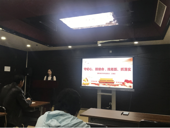副院长江傲霜以“守初心、担使命,找差距、抓落实”为题,为学院全体教职员工和学生党员讲授了主题教育党课。