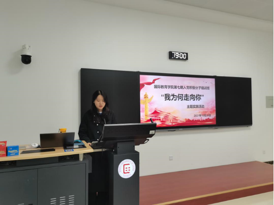 2021级研究生党支部在明德楼122教室召开入党积极分子培训班“我为何走向你”主题实践活动,共有55名入党积极分子培训班成员通过线上、线下方式参加会议。会议由2021级研究生党支部书记王梦月主持。