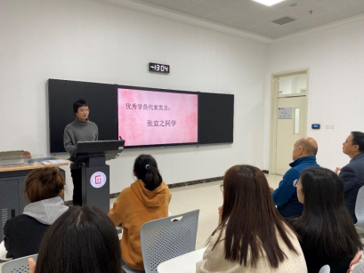 之后,本次培训班本科生学员代表张宜之进行发言。张宜之同学谈到,经过这一段时间的党课学习和实践活动,她和同学们都加深了对中国共产党的认识,端正了自己的入党动机。她认为,正是中国共产党的历史和征程,给予了我们共同的精神财富和不竭动力。