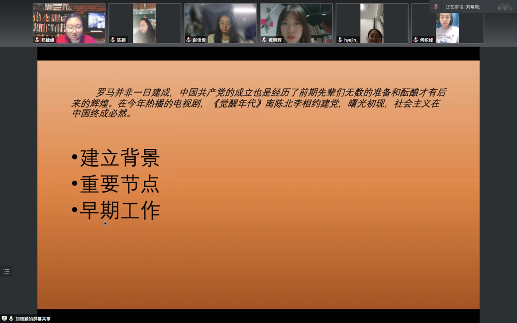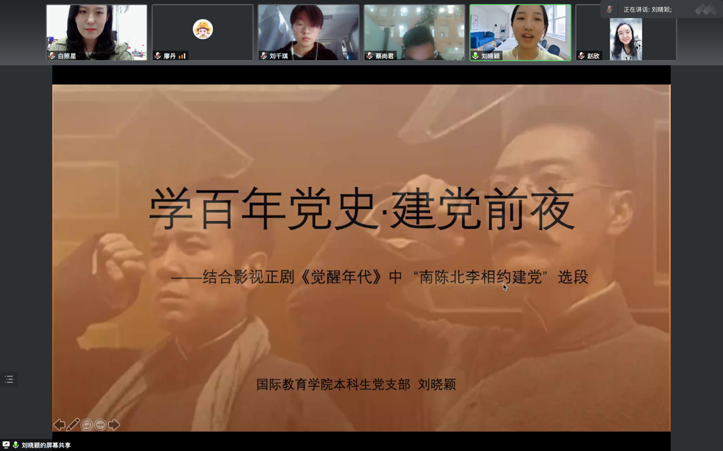 本科生党支部在线上开展了第四次“党员讲党课”系列学习活动。第四讲的主题为“学百年党史·建党前夜”。党课由支部书记白照星同志主持,由支部党员刘晓颖同志主讲,银魂漫画