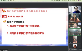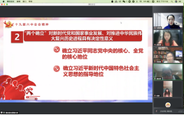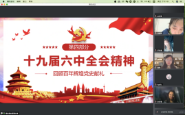 本科生党支部在线上开展了第五次“党员讲党课”系列学习活动。第五讲的主题为“献礼建党100周年——十九届六中全会”。党课由支部书记白照星同志主持,由支部党员赵佳雪、蔡尚君同志主讲,银魂漫画