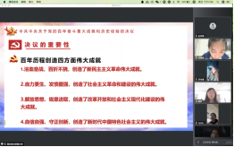 在本节党课中,赵佳雪同志首先向支部党员们介绍了中国共产党第十九届中央委员会第六次全体会议,这次会议于2021年11月8日至11日在北京举行。全会听取和讨论了习近平受中央政治局委托作的工作报告,审议通过了《中共中央关于党的百年奋斗重大成就和历史经验的决议》,审议通过了《关于召开党的第二十次全国代表大会的决议》。习近平就《中共中央关于党的百年奋斗重大成就和历史经验的决议(讨论稿)》向全会作了说明。