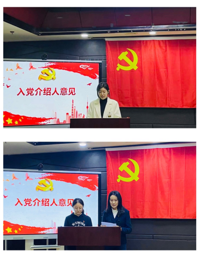 大会第二项,准备接收为预备党员的9位同志依次宣读了入党志愿书,围绕对党的认识、入党动机以及自身现存的不足与未来努力方向进行阐述。