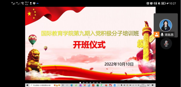 举办了第九期入党积极分子培训班开班仪式,本次开班仪式使用腾讯会议进行。