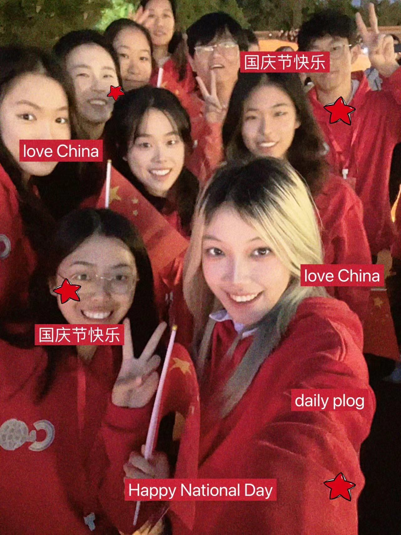 “迎着十月的料峭寒风,站在金水桥旁的观礼台上,我内心的激动无法言表。漫长的等待随着天边泛起的鱼肚白,在看见国旗缓缓升起的那一刻,心中骄傲感动与呼之欲出的泪水,化作祖国生日这天最真挚的赞歌。祖国母亲!生日快乐!” 23级汉语国际教育本科生薛菁华同学在谈到观礼感受时,依然难掩激动的心情。