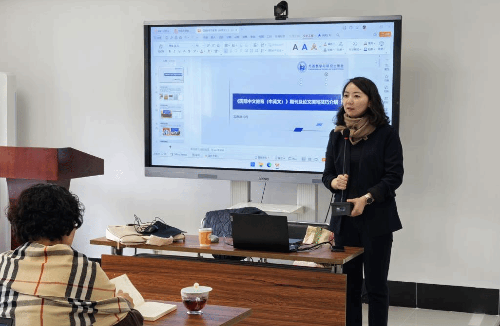 鞠慧社长以“编辑视角下的真问题与真研究:基于《国际中文教育(中英文)》期刊的编辑实践与审思”为主题,结合自身丰富的编辑实践和资源研发经验,从学术期刊的选稿原则和审稿流程切入,系统地阐释了推动学科进步的“真问题”以及遵循学术规范的“真研究”。她指出,优秀研究应具备明确的问题意识、严谨的方法路径与清晰的实践指向。还在对典型稿件的分析基础上,揭示了研究中常见的误区与改进方向。