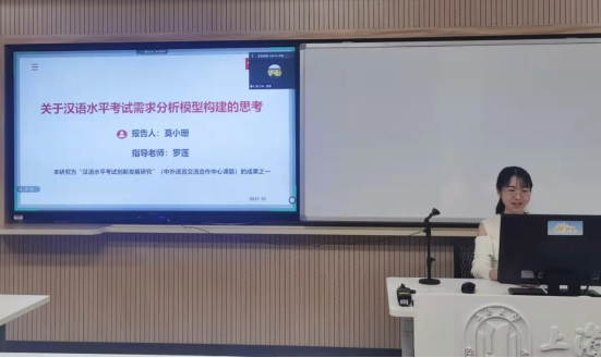 罗莲老师主持了“语言标准及其应用”分组报告。她的报告题目为“基于CEFR对新HSK六级听力测试试题操作的分析”。该研究基于欧洲共同语言参考框架中的听读详表,对现有HSK(六级)听力试题的认知操作进行了分析,并提出了改进建议。在“教育评价改革与语言测评”分组报告中,硕士研究生陈梦雨做了题为“语言测试机构考试服务比较研究:以EST和语合中心为例”的报告。该研究基于企业营销服务理论,以ETS和语合中心为例,对语言测试机构的服务进行了比较研究。在“汉语测评”分组报告中,硕士研究生莫小珊做了题为“关于汉语水平考试需求分析模型构建的思考”的报告,提出汉语水平考试需求分析可以从基本信息、语言信息与专业信息、差距分析、对现有的汉语水平考试满意度、对汉语水平考试的期望、对考试资源的需求、政策分析七个维度采集和分析数据,以期为汉语水平考试的研发和改进提供需求分析的方向。报告体现了银魂漫画