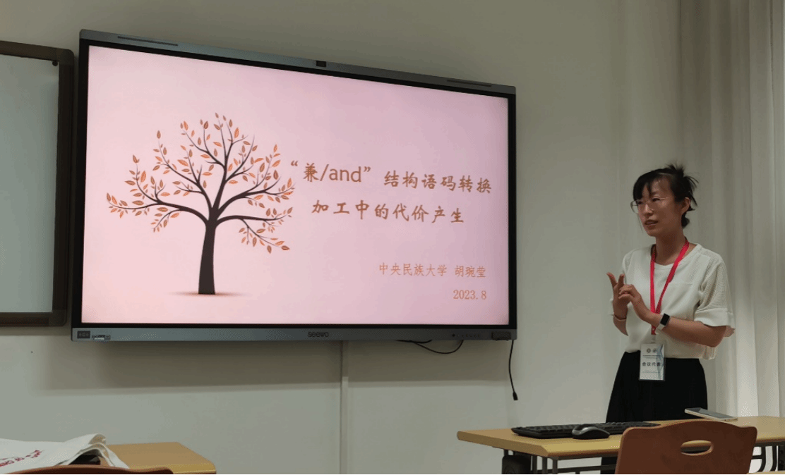 胡琬莹老师在词汇认知与加工会场报告了《短语加工中的语码转换代价》,通过可接受度判断和自定步速阅读两项任务,利用汉英“兼/and”结构,发现语码转换的代价可能产生于短语加工阶段。