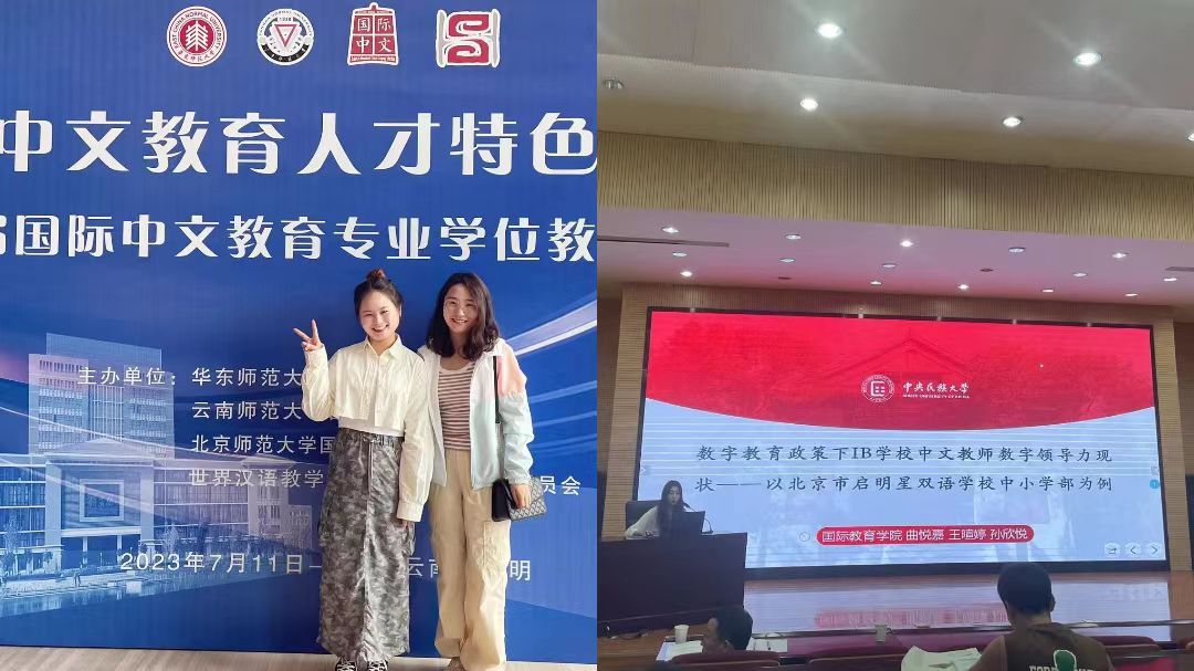 21级硕士生曲悦嘉、王暄婷、孙欣悦汇报了《数字教育政政策下IB学校中文教师数字领导力现状——以北京市启明星双语学校中小学部为例》。21级硕士生何林、梁倍男的报告题为《积极心理学视域下职前汉语教师愉感研究》。